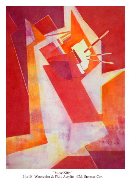 After yesterday’s “Spice Kitty”, painted in warm colors, I thought I’d show you the opposite. Blue is the ultimate in cool, thus the double meaning in the title “Cool Kitty”.